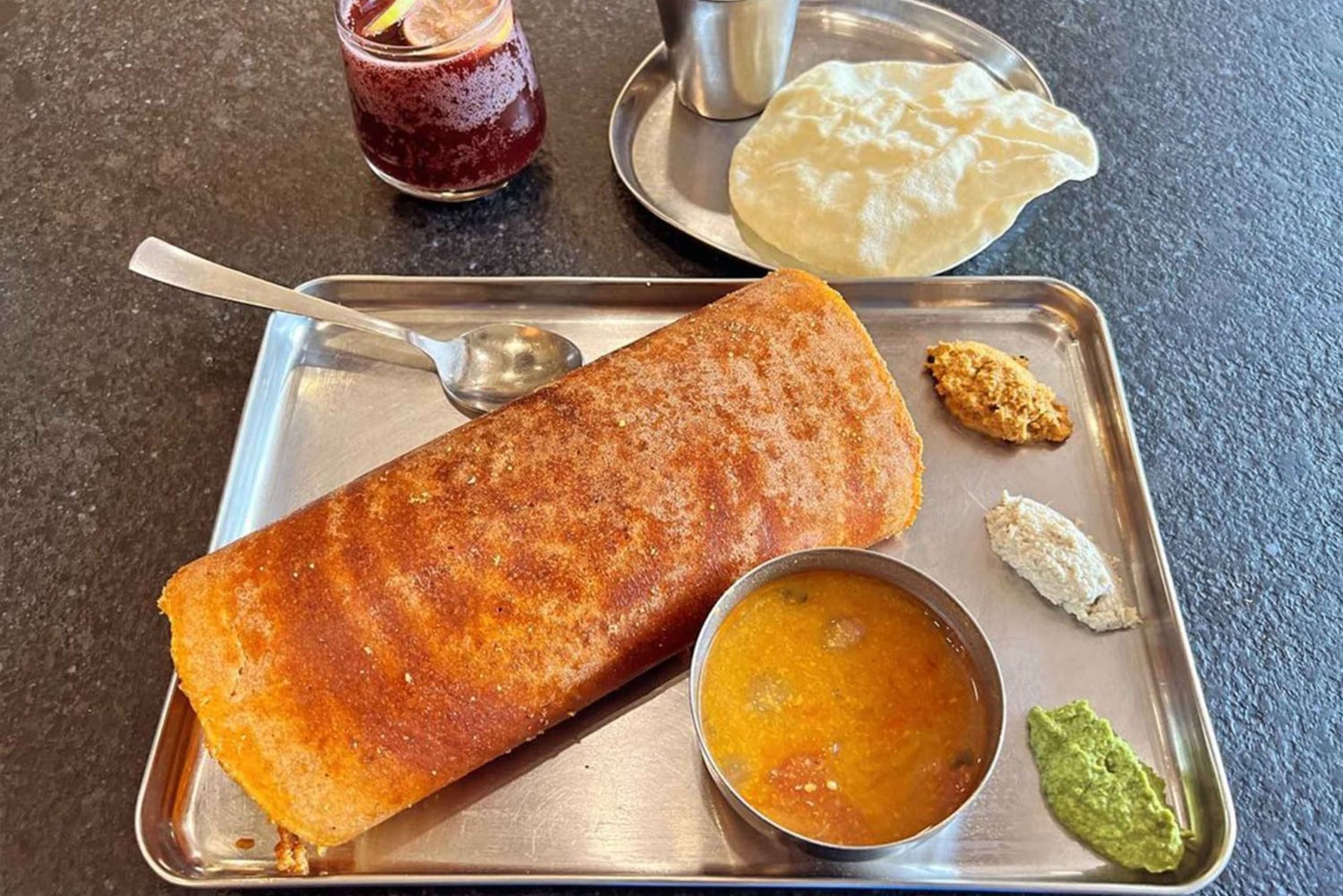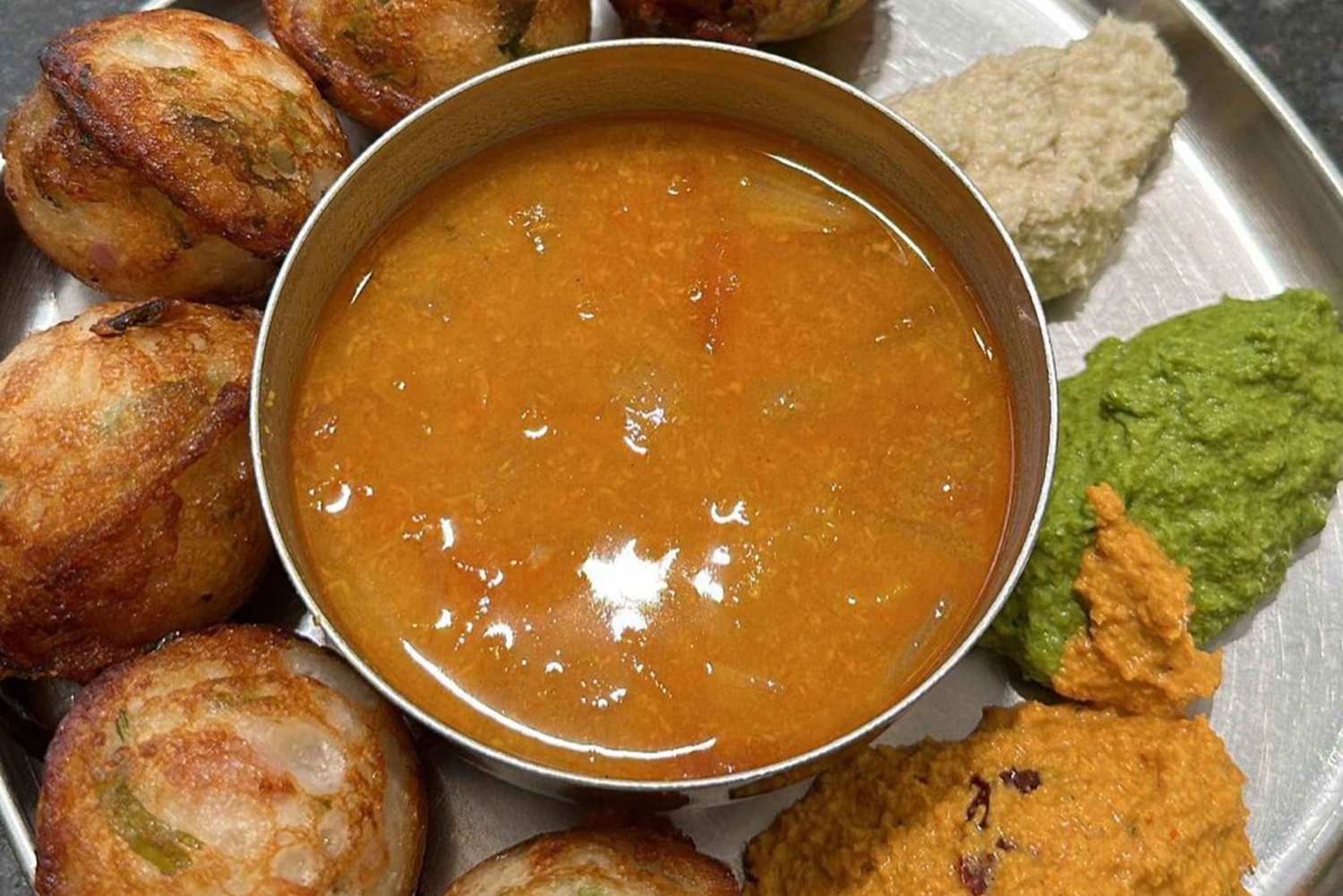Repas indien du sud dans un café avec café filtre (si option choisie)