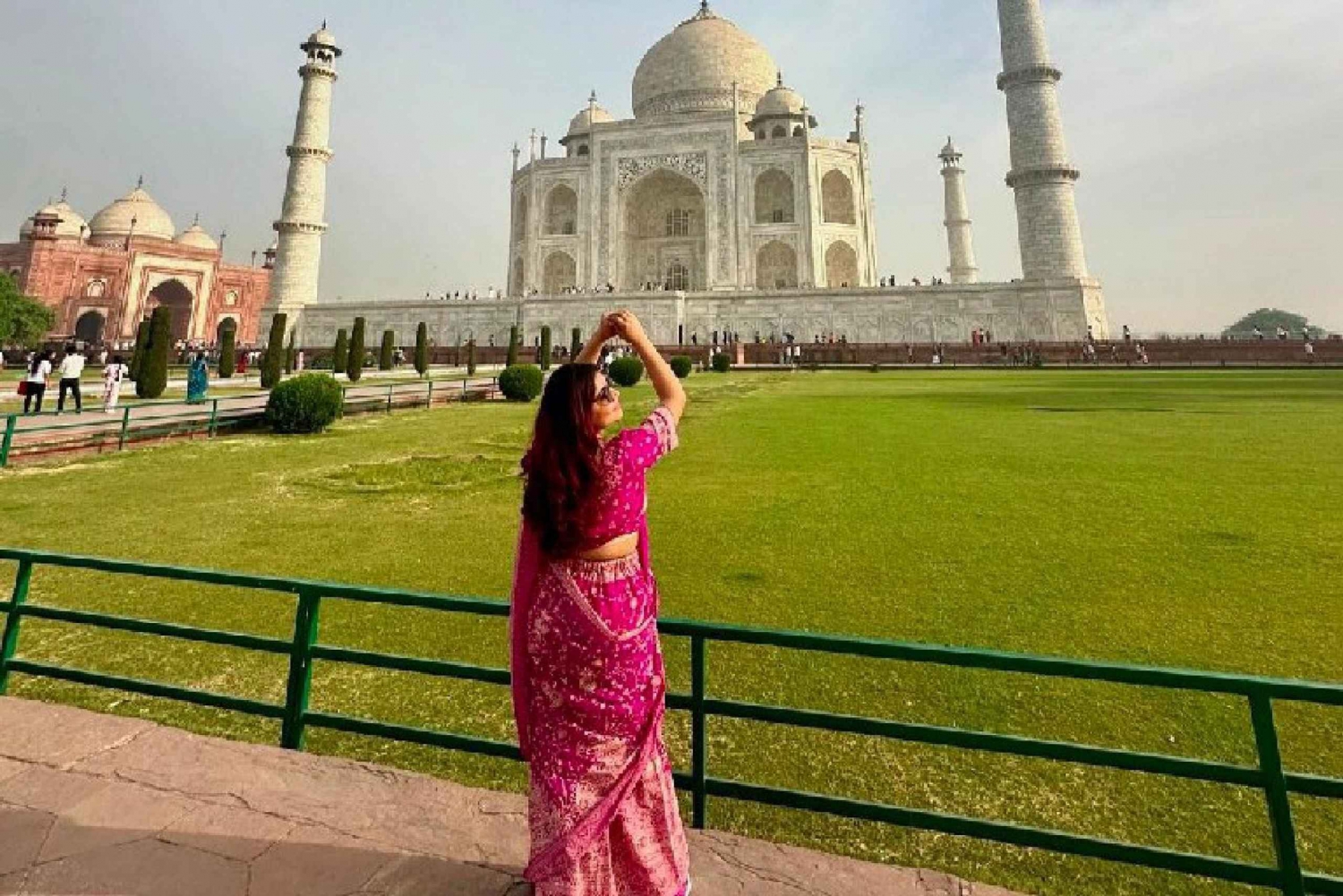 Comece o seu dia muito antes do mundo acordar — com uma viagem de sonho saindo de Deli num carro particular com ar condicionado. À medida que a primeira luz surge no horizonte, testemunhe o Taj Mahal ao nascer do sol — uma visão de amor e simetria em tons dourados suaves.