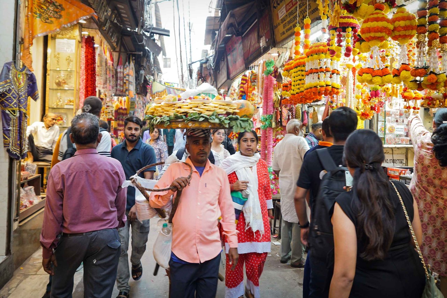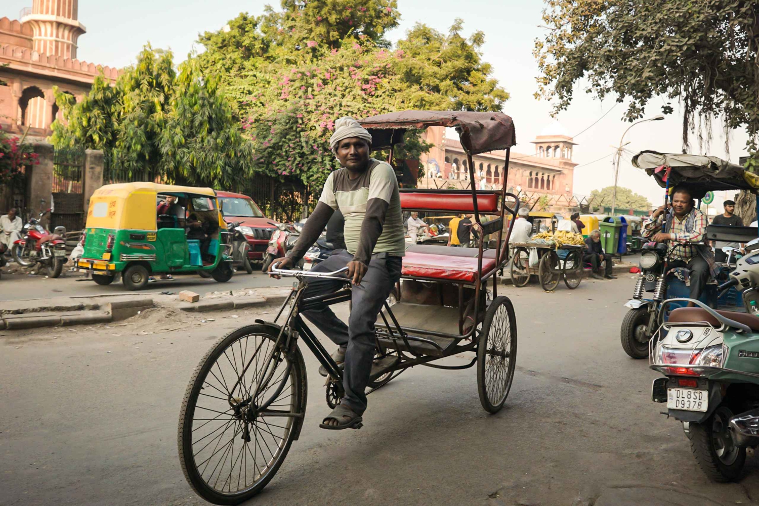 Приключение продолжается захватывающей поездкой на рикше по оживленным улицам Чандни-Чоук, известным своими красочными магазинами, наполненными одеждой, украшениями и аппетитной уличной едой.